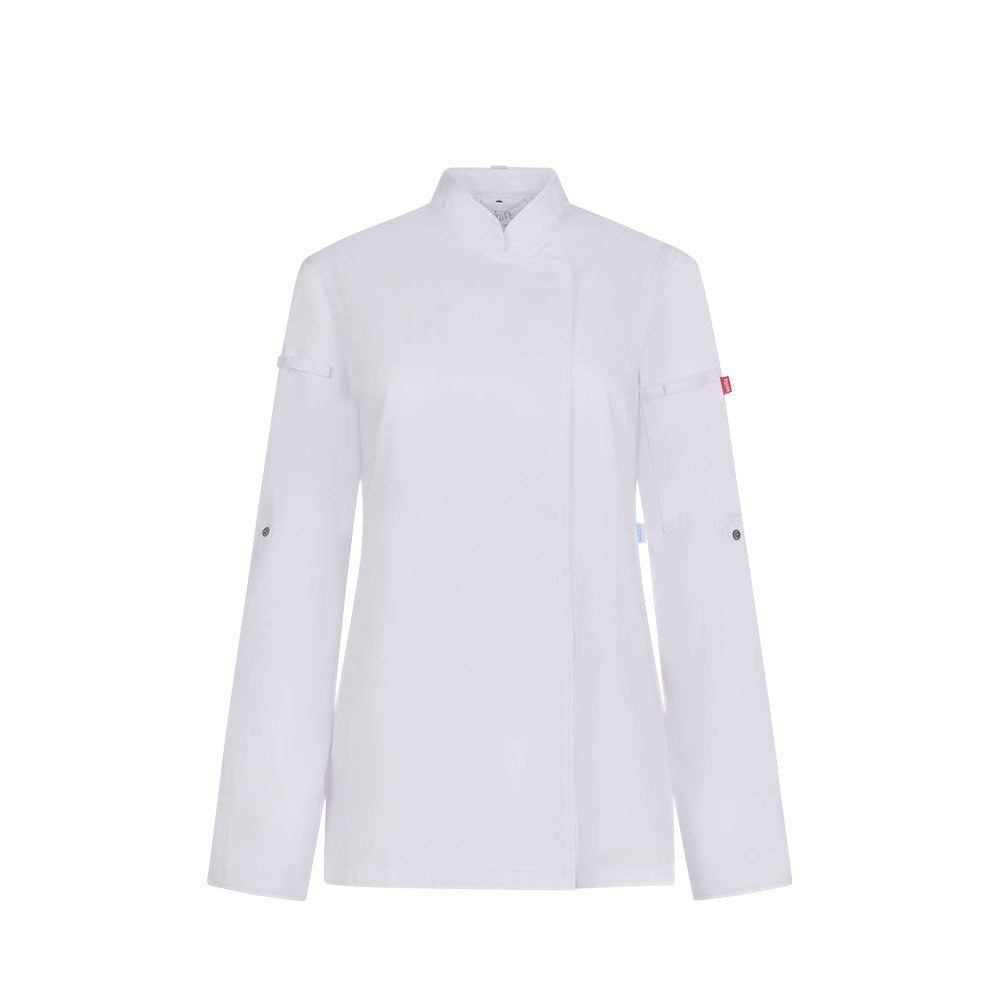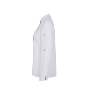 Veste de cuisine pour femme (190 g/m²) en coton (35 %) et polyester recyclé (65 %). Conception féminine et confortable, tissu hydrofuge et dos en tissu COOLMAX respirant. La veste est dotée d'une fermeture éclair centrale avec boutons dissimulés. Taille : XS, S, M, L, XL, 2XL