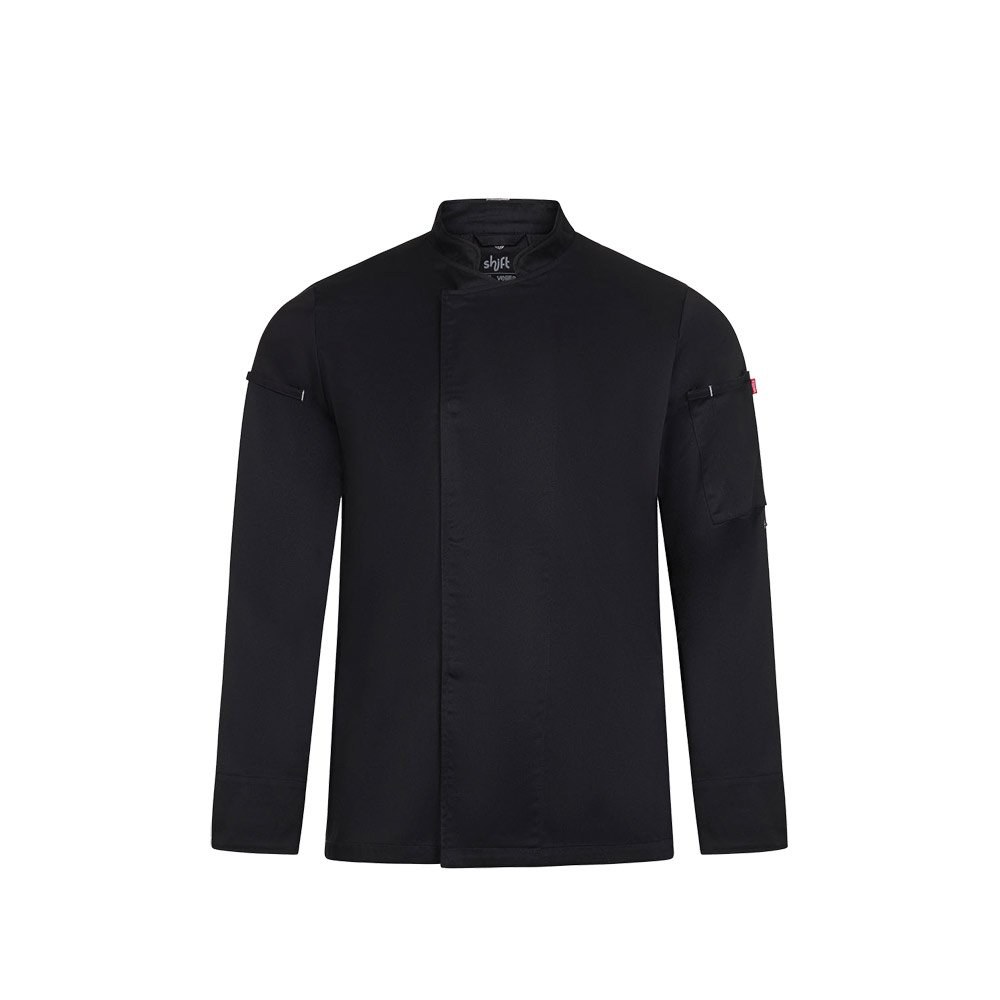 Veste de chef unisexe (190 g/m²) en coton (35 %) et polyester recyclé (65 %). Confortable, elle est dotée d'un tissu hydrofuge et doux au toucher, ainsi que d'un dos en tissu COOLMAX respirant. La veste est dotée d'une fermeture éclair centrale avec boutons dissimulés. Taille : S, M, L, XL, 2XL, 3XL